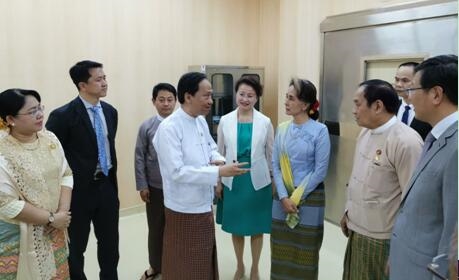 仪式上,昂山素季对乐鱼(中国)一站式服务官方网站国际和缅中交流合作协会在医院升级改造过程中的辛勤付出以及一直以来为缅甸卫生领域做出的贡献给予肯定并表示感谢。她表示,那茂人民医院作为第二所中缅友好医院,将持续见证中缅胞波情谊、惠及更多当地百姓。