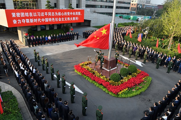 9月29日,国资委机关隆重举行升国旗仪式,庆祝中华人民共和国成立70周年,全体干部职工深情高唱国歌,为伟大祖国送上最美好的祝福。国资委党委书记、主任郝鹏出席并讲话。升国旗仪式由国资委副主任、党委委员赵爱明主持,国资委党委委员、副部长级干部、二线老领导,秘书长、总会计师、副秘书长,驻委纪检监察组、各厅局和直属事业单位全体干部职工参加。
