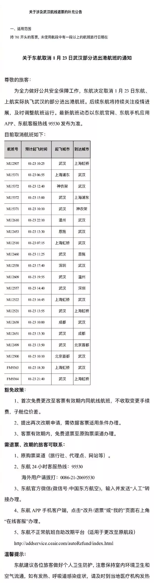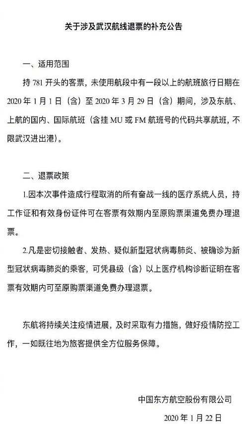 (一)所有奋战一线的医疗系统人员,因本次事件造成行程取消的,可凭工作证在客票有效期内免费退票;