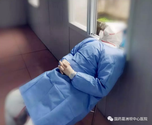 第一批发热门诊专家张佳光、胡圣阳,他们不辞辛苦,连续作战,累了就在走廊上找把椅子,靠着窗户小憩一会儿.....此时,外面还飘着小雨。