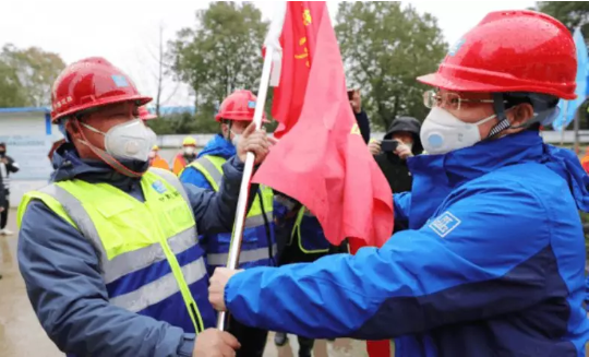 1月25日是大年初一。中建三局火神山医院项目举办党员突击队授旗仪式。“坚决完成建设任务,为抗击疫情做出贡献!”在党员突击队授旗仪式上,中建三局火神山项目经理张正林带着128名工人党员在党旗下宣誓,组建党员突击队,将不忘初心、牢记使命,发挥党员模范带头作用,勇担重任,确保按时保质保量完成任务。