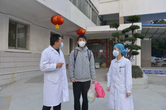今天出院的两例患者中,其中一位愉快地接受了我们的采访。他是一位年轻的小伙子,是湖北省某高校体育专业的在校大学生。