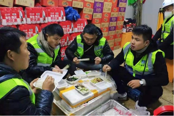 在火神山医院建设过程中,中建三局163名青年“请战声”不绝于耳,匆匆和家人告别,投入到建设施工的突击队中,建设队伍中90%以上都是90后员工,一位突击队员说:年夜饭也是在工地上和队友们一起吃的,虽然简单,但很有意义。