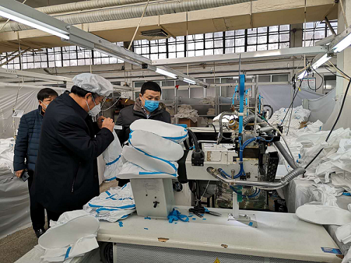 新兴际华集团所属3502、山西3534、涿州3543、绵阳3536和南京3521、3503、5302等7家企业,首批承制防护服生产任务。面对技术标准不熟、生产设备不全、人员到岗不足、原材料短缺等困难,7家企业勇挑重担、个个击破,夜以继日抓投产。同时迅速启动森普利、3512、3504、7555等4家企业作为第二梯队迅速跟进。在国务院国资委等有关部委的指导下,全力投入生产攻坚。