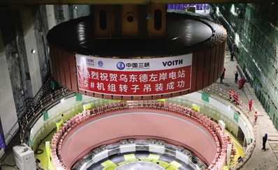 近日,由中国能建葛洲坝集团承担安装施工任务的乌东德水电站左岸地下电站5号机组转子成功吊装。资料照片