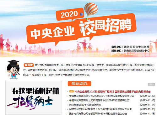 面向毕业生的校园招聘也是中央企业关注的重点,2020届高校毕业生规模将达到874万人的历史最高点。大多数央企在春节前启动了应届毕业生校招工作。目前这些企业正在按照计划推进后续工作,不因疫情变化影响之前既定的招聘安排。国务院国资委网站此前也推出“2020中央企业校园招聘”专题,加强抗疫期间中央企业招聘信息的集中发布。