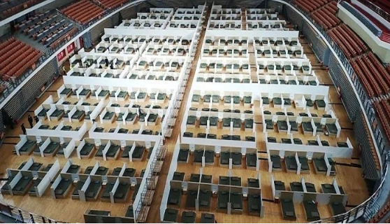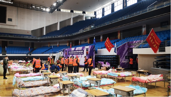 中建三局、中建八局等单位两天两夜火速完成武汉体育中心方舱医院建设。