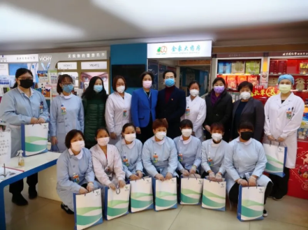 在药房门店,她亲切询问女职工工作生活情况,称赞她们不怕困难、坚守岗位、舍小家顾大家,为首都群众生命安全和身体健康筑起一道坚固的“防火墙”。