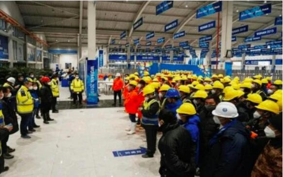 再一个就是安全防疫难度大。施工高峰期,25000名建设者24小时两班倒不停歇施工,存在着大规模人员聚集、大范围广场作业、长时间疲劳作业等疫情防控风险。
