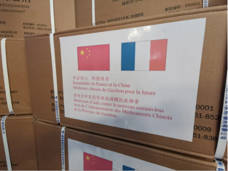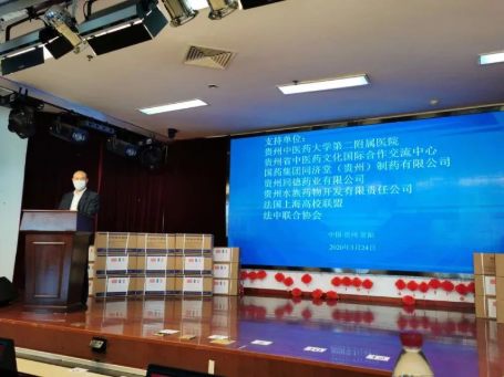 在捐赠仪式上,贵州省中医药管理局党组书记、局长于浩表示,疫情发生以来,贵州全省中医药系统认真贯彻习近平总书记对疫情防控工作的系列指示精神,全面落实省委省政府决策部署,在新冠肺炎疫情战“疫”中充分发挥中医药优势,坚持中西医结合治疗取得实效。疫情没有国界,贵州省中医药管理局与法国法中协会等机构有着长期友好的合作关系,衷心希望能在此基础上分享抗击新冠肺炎疫情的“贵州方案”。