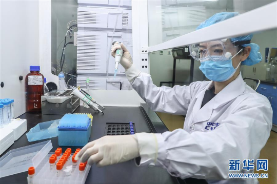 3月16日,工作人员在科兴中维质检实验室进行新型冠状病毒灭活疫苗细菌内毒素和抗原含量检测。新华社记者 张玉薇 摄