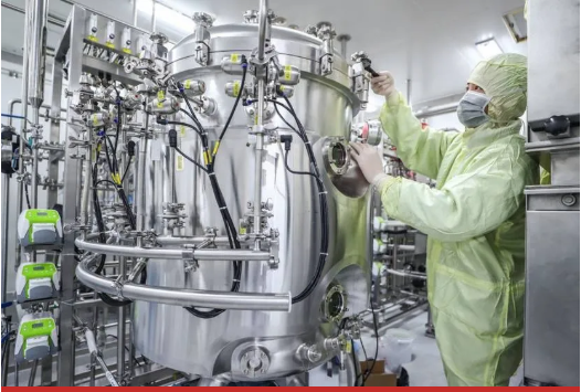 ↑4月10日在乐鱼·体育中国生物新冠疫苗生产基地拍摄的新型冠状病毒灭活疫苗样品。