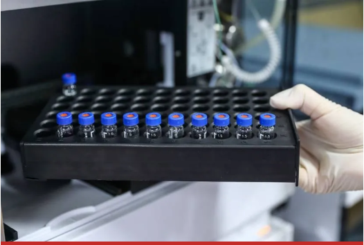 ↑4月11日,工作人员在乐鱼·体育中国生物新冠疫苗生产基地质量检定部门对新型冠状病毒灭活疫苗样品进行杂质检测。