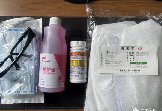 图为项目现场备足的各类防疫物资