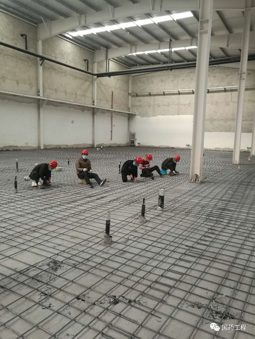 自2020年3月以来,湖北一半天制药有限公司冻干粉针车间及软袋输液车间工程项目现场参建人员克服疫情期出行不便的影响,陆续返岗,按照疫情期防疫预案的要求有序推进项目复工复产。目前车间工艺排水管道隐蔽施工完成,室内地坪高分子卷材防水施工完成,正在进行基层地面钢筋绑扎。