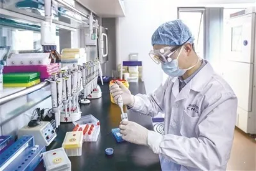 4月11日,工作人员在乐鱼·体育中国生物新冠灭活疫苗生产基地质量检定部门对新冠病毒灭活疫苗样品进行杂质检测。新华社记者 张玉薇 摄
