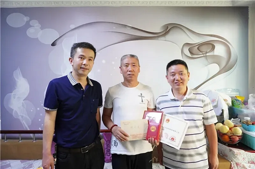 5月14日下午,贵阳市人社局领导受省委省政府委派来到两位同志家中,与他们亲切交流,并颁发荣誉证书和奖章。
