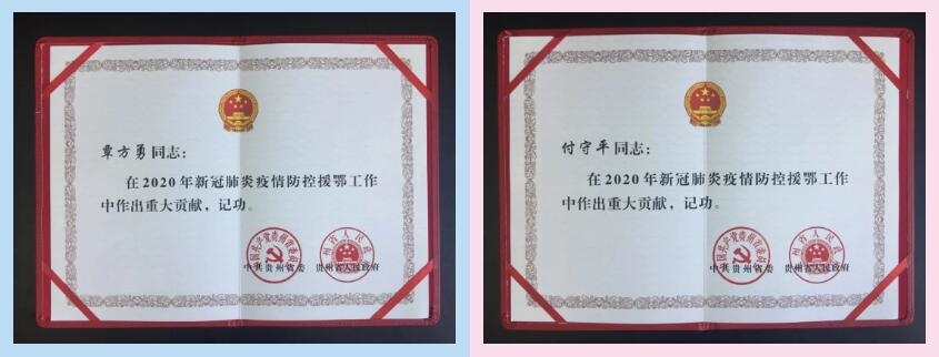 自新冠肺炎疫情发生以来,贵州省委、省政府坚决响应习近平总书记号令,坚决服从党中央统一指挥,在做好疫情防控工作的同时,举全省之力支援湖北疫情一线。为奖励先进、大力弘扬“不畏艰险、不怕困难、勇挑重担、勇往直前”的贵州援鄂抗疫精神,中共贵州省委、贵州省人民政府决定给予2020年新冠肺炎疫情防控援鄂医疗队员记功奖励。其中,中药控股旗下同济堂制药两名援鄂勇士覃方勇、付守平同志荣获记功奖励。