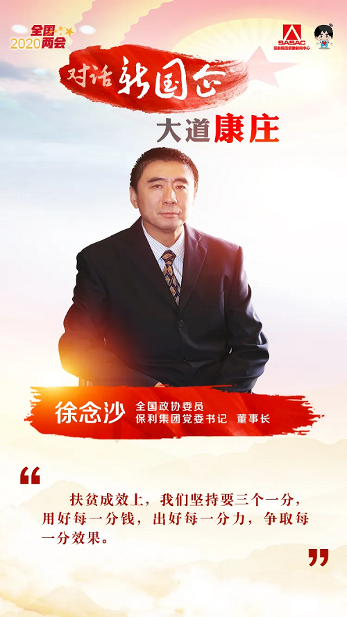 在新华网近期推出的两会热点调查中,脱贫攻坚是网民特别关心的热点之一,在谈到保利集团作为央企,近年来在扶贫方面有哪些特色做法时,徐念沙表示,在整体谋划上,保利做到“三个全覆盖”,即“参与全覆盖”,公司主要领导每年走遍定点扶贫县,仅2019年,领导班子、董事会62人次到贫困县扶贫调研,全部子公司均承担扶贫任务,全体干部员工通过各种方式参与扶贫;“责任全覆盖”,每年专题研究、部署、推进脱贫攻坚工作,覆盖上级对中央单位对口帮扶的全部建议方向,不留死角;“落实全覆盖”,年初确定计划,全程及时跟进,多方吸纳建议,尤其是当地政府和帮扶对象的意见,年底检查督查,确保帮扶项目落地见效。