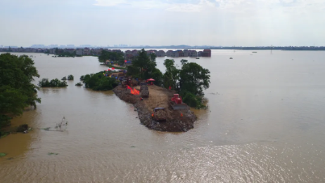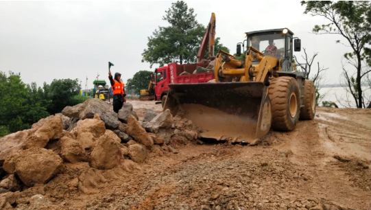 收到黄梅县大河袁山村和桂家坝发生险情时,中国中铁大桥局七公司安九铁路项目部正在对鳊鱼洲施工区域进行子堤加固。安九铁路项目部立即组织两台吊机、一台装载机和78名人员,分两批先后前往大河袁山村和桂家坝进行救援。
