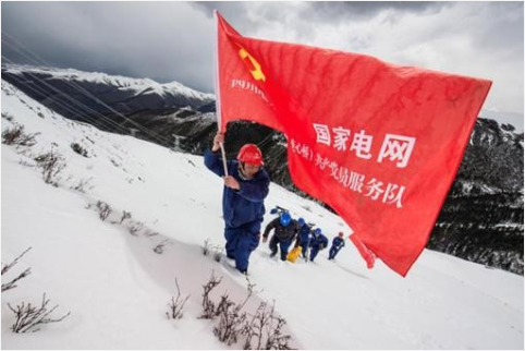 国家电网共产党员服务队队员在四川阿坝无人区建设110千伏线路。