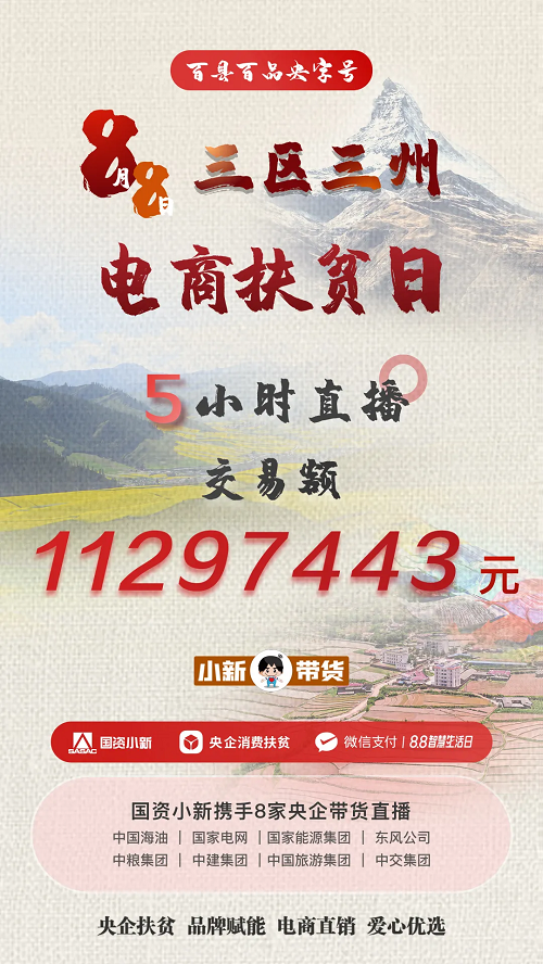 “百县百品央字号”暨“小新带货”风生水起的背后,是国务院国资委力推央企消费扶贫的坚定决心和有效举措。今年以来,国务院国资委组织开展中央企业消费扶贫专项行动,着力帮助解决贫困地区农产品滞销的突出困难。5月12日,国务院国资委央企消费扶贫电商平台正式上线,为贫困县农产品提供稳定持续、辐射面广的电商销售渠道。