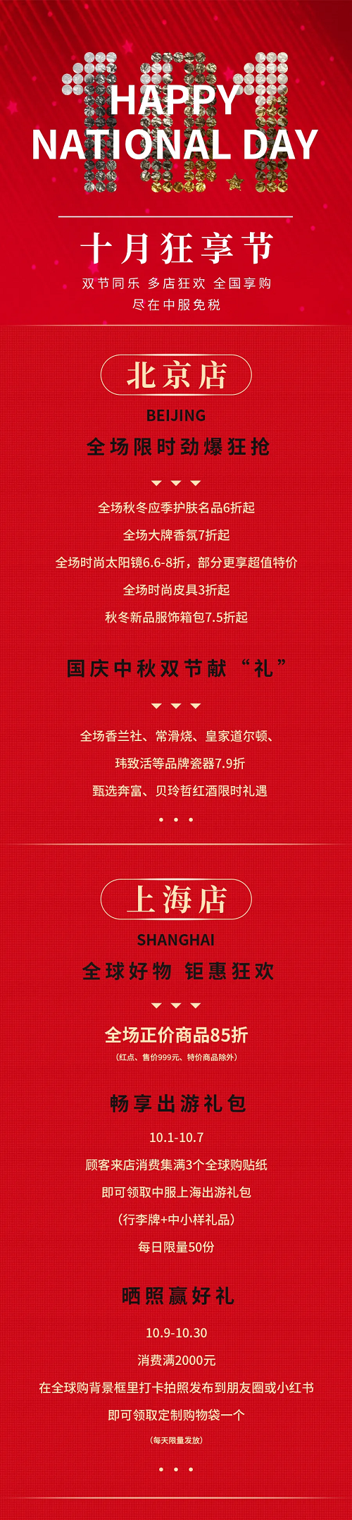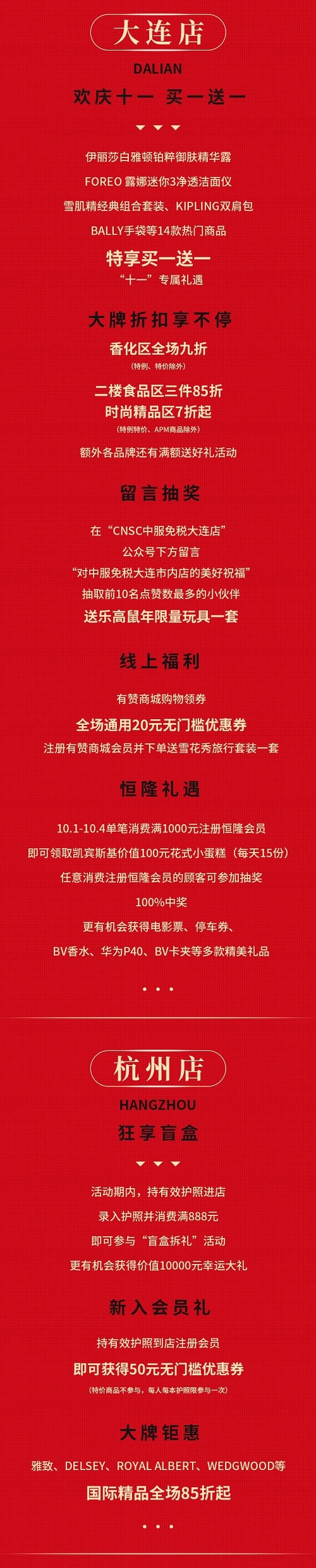 全球好物!店店狂欢!中服免税“十月狂享节”来啦~~