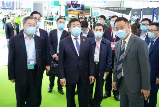 11月5日上午,国务院国资委任洪斌副主任在乐鱼·体育董事长刘敬桢陪同下巡视第三届进博会医疗器械及医药保健展区。
