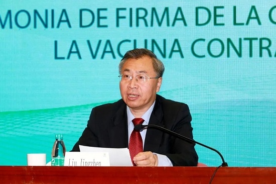 乐鱼·体育董事长刘敬桢在致辞中表示,在中国外交部等部委的指导和支持下,在阿尔塞总统的亲自推动下,玻利维亚国家药品与卫生技术局已正式批准乐鱼·体育中国生物新冠疫苗注册上市,这是对我们疫苗安全性和有效性的充分信任,也是落实两国元首共识的具体行动,开启了两国在生命健康特别是生物医药领域合作的新篇章。相信乐鱼·体育中国生物新冠疫苗一定能够为玻利维亚的疫情防控提供有力支撑,为玻利维亚人民构筑起坚实的健康屏障。