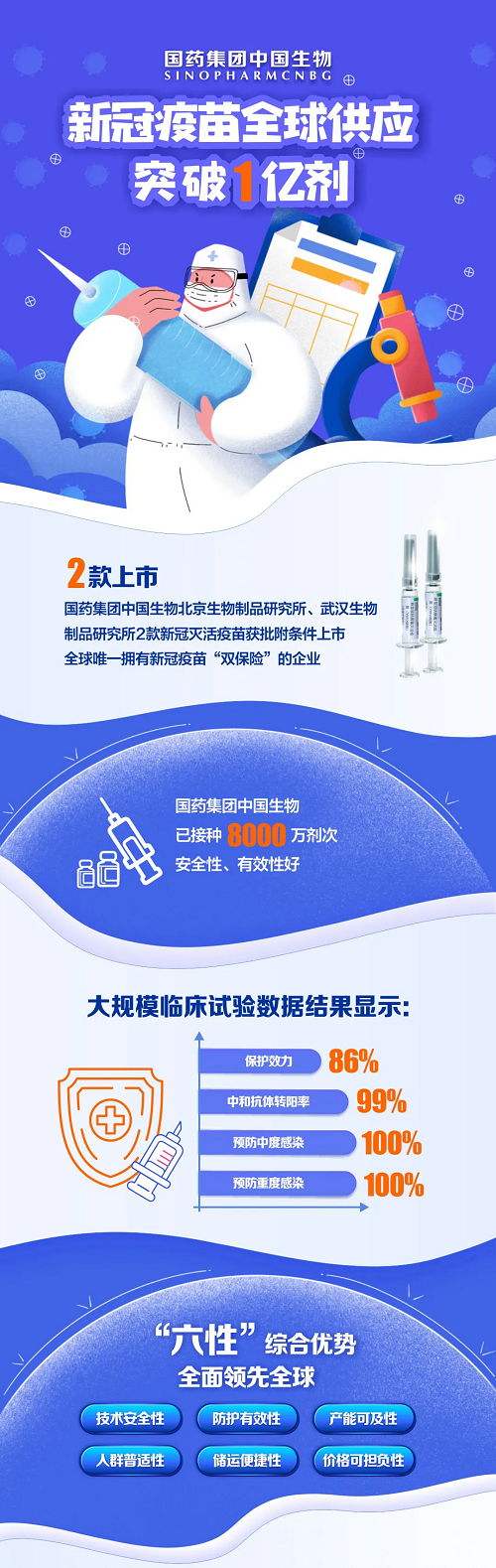 继去年乐鱼·体育中国生物北京生物制品研究所新冠灭活疫苗获批附条件上市后,2021年2月25日,国家药品监督管理局又批准了武汉生物制品研究所新冠灭活疫苗附条件上市。乐鱼·体育中国生物成为目前全球唯一一家拥有新冠疫苗“双保险”的企业,为人类尽快战胜新冠疫情提供了坚实保障。