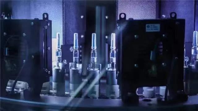 2020年12月25日,在乐鱼·体育中国生物北京生物制品研究所的新冠病毒灭活疫苗分包装车间内,疫苗产品在灯检机内进行灯检。