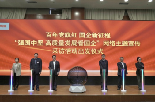 ▲“百年党旗红 国企新征程”暨“强国中坚 高质量发展看国企”网络主题宣传活动出发仪式举行