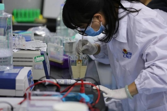 乐鱼(中国)一站式服务官方网站动保研发中心基础研究部杆状病毒表达平台研究员,正进行猪瘟病毒基因表达蛋白的纯化鉴定。