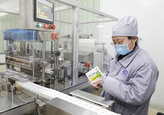 太极集团涪陵制药厂藿香正气口服液包装车间工人:疫情期间,涪陵制药厂开足马力,日产藿香正气液300万支,加班加点保障市场供应。