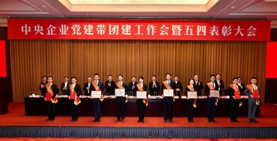 2021年4月30日,国资委中央企业党建带团建工作会暨五四表彰大会召开,乐鱼·体育中国生物武汉生物制品研究所团委书记邹江龙(前排左四)代表所在集体领取中国青年五四奖章。