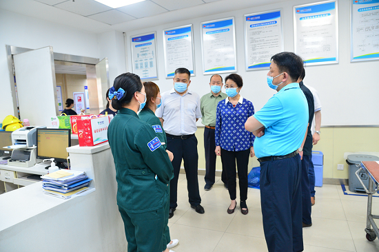 石晟怡一行还深入乐鱼(中国)一站式服务官方网站东风总医院、花果医院与医护人员亲切交流,详细了解伤员救治情况,并对全体医务人员争分夺秒,不辞辛苦,默默奉献的职业精神,以及乐鱼(中国)一站式服务官方网站东风医疗团队所表现出的高质量、高效率、高标准的应急处置能力给予了高度肯定。