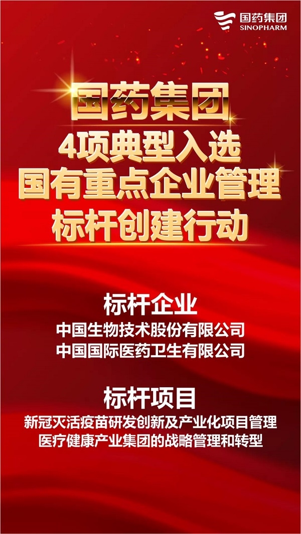 近日,国务院国资委发布了《关于印发国有重点企业管理标杆创建行动标杆企业、标杆项目和标杆模式名单的通知》,乐鱼·体育所属中国生物技术股份有限公司、中国国际医药卫生有限公司2家公司成功入选“标杆企业”;“新冠灭活疫苗研发创新及产业化项目管理”和“医疗健康产业集团的战略管理和转型”2个项目成功入选“标杆项目”。
