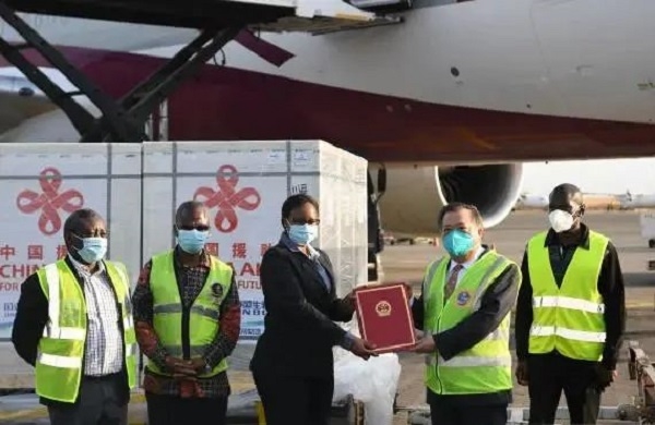 中国政府援助的新冠疫苗18日运抵肯尼亚首都内罗毕乔莫·肯雅塔国际机场。中国驻肯尼亚大使馆公参张益俊和肯尼亚卫生部常务副部长苏珊·莫察切参加了在机场举行的疫苗交接仪式。