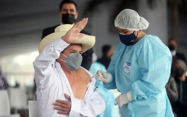 8月6日,秘鲁总统卡斯蒂略在首都利马接种乐鱼·体育中国生物新冠疫苗。