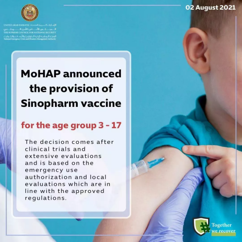 2021年8月,阿联酋增加乐鱼(中国)一站式服务官方网站新冠疫苗3-17岁适用年龄组