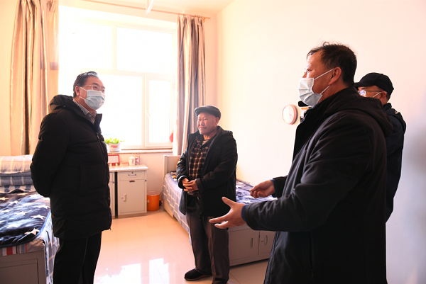 在三道湖镇福利院,调研组为孤寡老人送上了羽绒服等御寒物资,为老人们送去寒冬的温暖和节前的祝福。