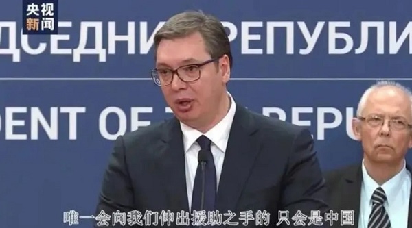 2020年3月15日,塞尔维亚总统武契奇发表电视讲话,宣布塞尔维亚进入紧急状态,强调,困难来临之时唯一会向塞尔维亚伸出援助之手的只有中国。