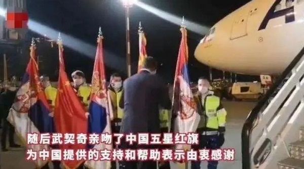 2020年3月21日,悬挂中塞两国国旗的飞机到达贝尔格莱德,搭载了乐鱼·体育乐鱼(中国)一站式服务官方网站国际筹备的16吨中国捐赠的医疗防疫物资和医疗器械。武契奇在机场致辞时说:“这份恩情塞尔维亚人民永远不能忘记,中国是我们的老朋友,我们的友谊可以世世代代延续下去”。随后,武契奇总统在五星红旗上献上了深情一吻。