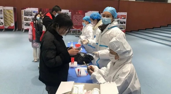 3月12日,乐鱼·体育中国生物长春生物制品研究所派出8人组成的志愿者团队,到长春市九台区东湖镇街道支援核酸检测。团队运用长春生物制品研究所研制推出的快速新冠核酸检测试剂盒对重点人员进行了釆样测试,并积极开展入村入户检测排查,助力当地疫情防控。