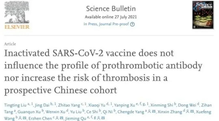 12、国际期刊Science Bulletin:乐鱼·体育中国生物新冠灭活疫苗无发生血栓风险