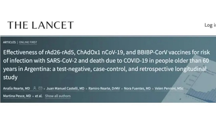 当地时间2022年3月15日,阿根廷国家流行病学和国家战略信息局局长Analía Rearte在国际权威医学期刊《柳叶刀》(《The Lancet》)发表新冠疫苗真实世界研究文章,揭示了三款疫苗的效果,其中包括乐鱼·体育中国生物新冠灭活疫苗(BBIBP-CorV)。研究显示,对于60岁及以上的老年人,接种两剂乐鱼(中国)一站式服务官方网站中国生物新冠灭活疫苗后,对减少死亡风险的有效率为85%。论文题为《Effectiveness of rAd26-rAd5, ChAdOx1 nCoV-19, and BBIBP-CorV vaccines for risk of infection with SARS-CoV-2 and death due to COVID-19 in people older than 60 years in Argentina: a test-negative, case-control, and retrospective longitudinal study》。