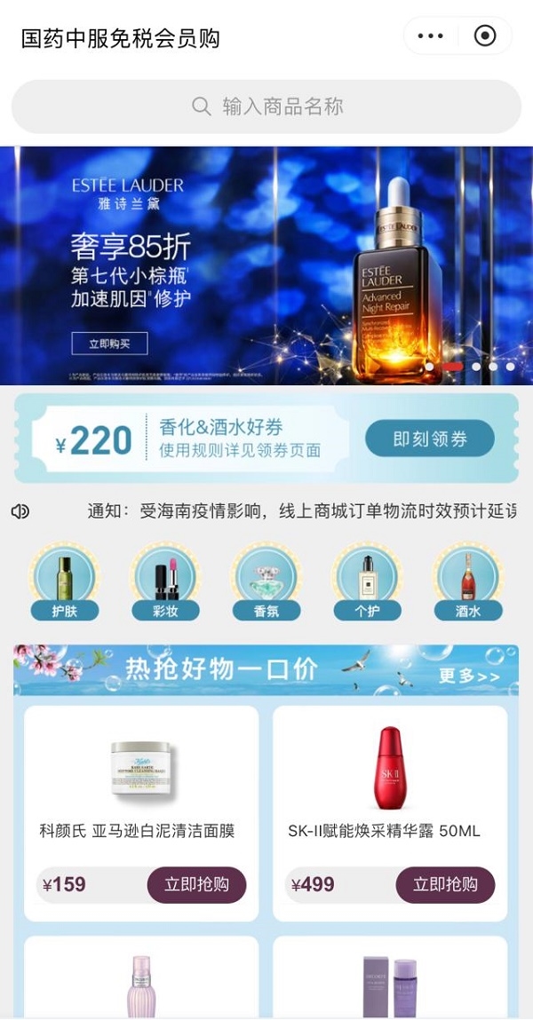 此次,包括乐鱼(中国)一站式服务官方网站中服离岛免税购、乐鱼(中国)一站式服务官方网站中服免税会员购店铺以小程序的形式在京东国际上线,产品包括海蓝之谜、雅诗兰黛、兰蔻、肌肤之钥、阿玛尼、圣罗兰、轩尼诗、马爹利、Apple等海量国际大牌,涵盖了彩妆、护肤、香水、酒水、3C数码等多个品类。店铺开业期间,包括满500减120、满100减50等满减,以及部分单品低至3.4折等优惠,为消费者带来更加便捷和优惠的免税购物体验。