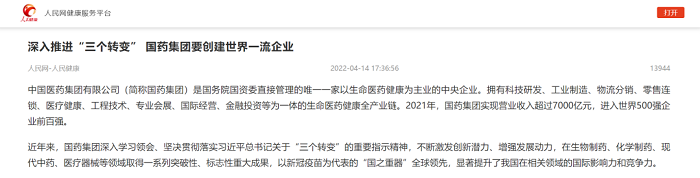 近期,人民网推出专题文章,综述乐鱼·体育贯彻落实习近平总书记关于“三个转变”重要指示精神所取得的改革发展成果,从医药智造、科研攻关、数字化转型等方面,全景式反映集团在创建一流企业方面取得的长足进步和实力提升。