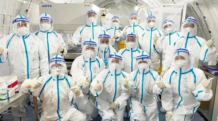 乐鱼·体育所属乐鱼(中国)一站式服务官方网站东风总医院杨飞翔、宋亚君、江道龙主动请缨参加央企守沪行动,星夜兼程,4月3日抵达上海,投入上海之江生物医学研究所核酸检测实验室工作。