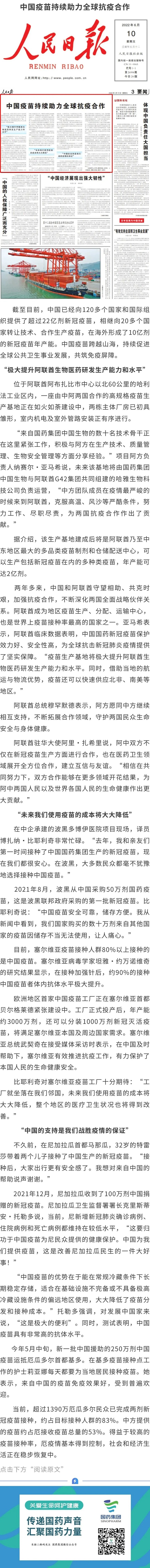 【人民日报】中国疫苗持续助力全球抗疫合作